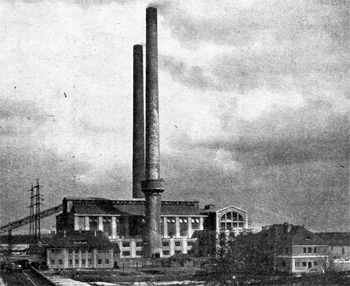 Der Bau des Werkes und einer zugehörigen Werksiedlung begann im September 1921. Aufgrund der ökonomischen Instabilität infolge der Inflation konnte der Bau erst im Juli 1923 vollendet werden. Dennoch war man bestrebt, einen hohen technischen Entwicklungsstand bei vertretbaren Risiken zu realisieren. Geplant war, das Werk in fünf Ausbaustufen mit einem Abstand von etwa jeweils zwei Jahren zu errichten. Dabei war durchaus einkalkuliert, dass der technische Fortschritt in einer Zeit stürmischer Entwicklungen stets Berücksichtigung finden müsste (Kahl 2009, 111) (Abb. 2-4).